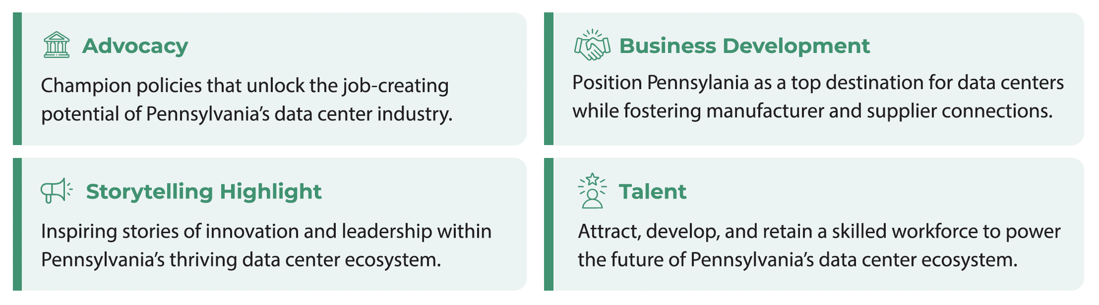 The Data Center & AI Infrastructure Community's mission is to make Pennsylvania a global hub for data center and AI innovation, powered by our energy, built by our manufacturers, and creating high quality local jobs.