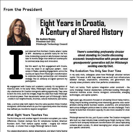 For Croatia specifically, the answer should be obvious: they’re not just another innovation ecosystem to study. They’re part of Pittsburgh’s story.