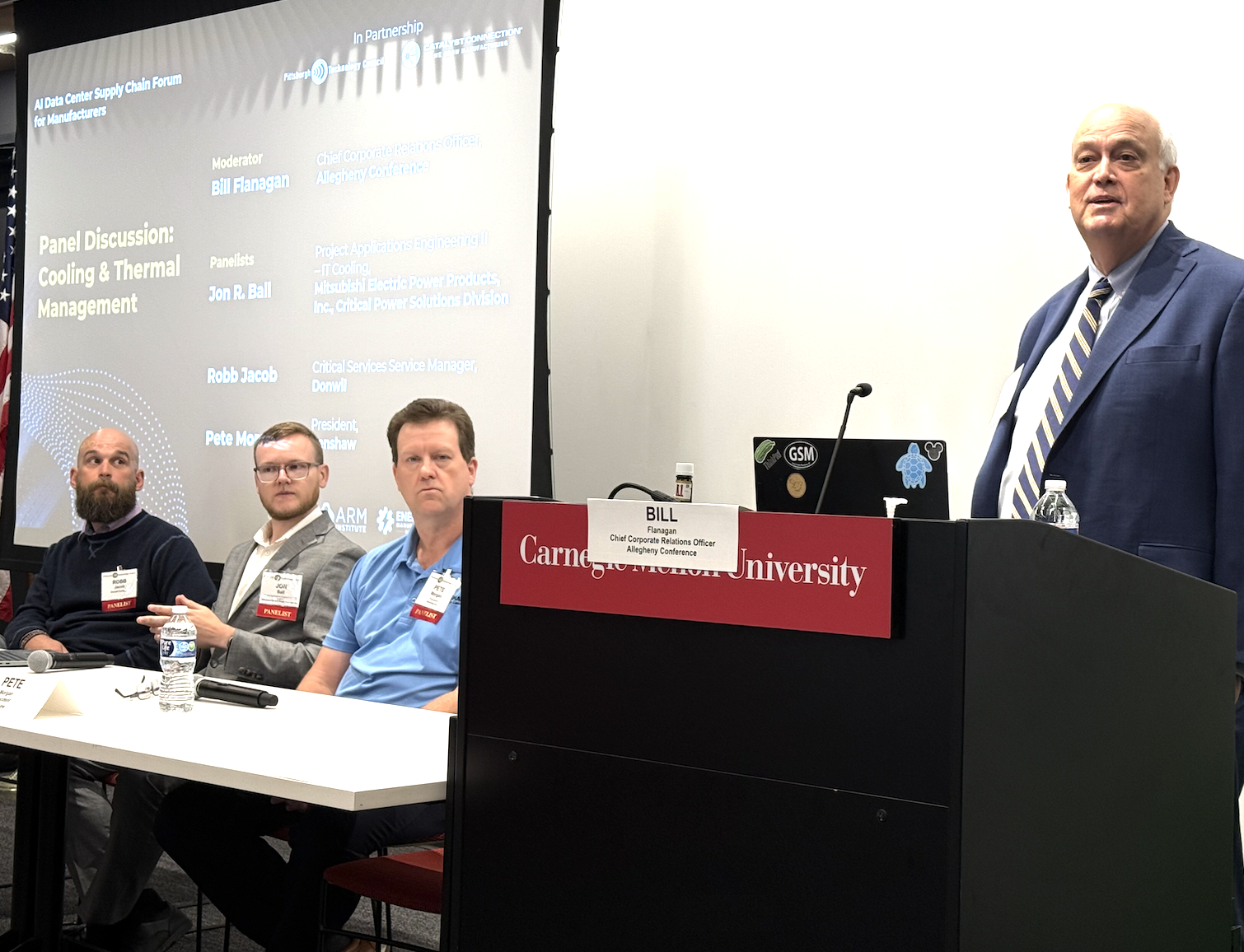 The Catalyst Connection and Pittsburgh Technology Council AI Data Center Supply Chain Forum for Manufacturers brought together industry leaders to explore how manufacturers can adapt and thrive in this rapidly evolving ecosystem. Featuring three panel discussions—Cooling & Thermal Management, Structural, Cabling, Racks, and More!, and Energy Resources to Power AI Data Centers—the forum provided insights into the supply chain challenges, innovations, and opportunities surrounding next-generation data center development.
