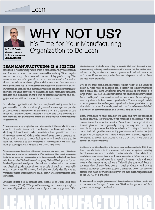 By Eric McDonald, Managing Director of Continuous Improvement, Catalyst Connection