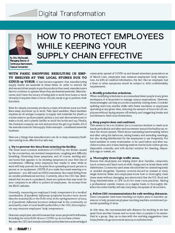 With panic shopping resulting in empty shelves at the local stores due to COVID-19 virus, it has become apparent that manufacturing supply chains are essential in these times. In order to restock the shelves and allow people to get the products they need, manufacturers have to continue to operate when they are deemed essential. Manufacturers don’t have the luxury of being able to work from home or work virtually; it requires them to be on-the-job, ready to go to perform their functions.